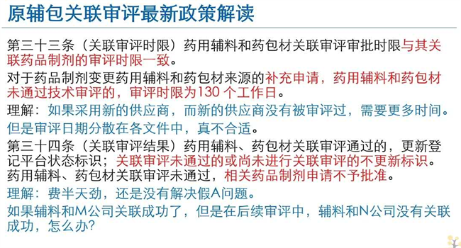 《化學(xué)原料藥、藥用輔料及藥包材與藥品制劑關(guān)聯(lián)審評審批管理規(guī)定(征求意見稿)》中規(guī)定:對于藥品制劑變更藥用輔料和藥包材的補充申請,藥用輔料和藥包材未通過技術(shù)審評的,審評周期130天。